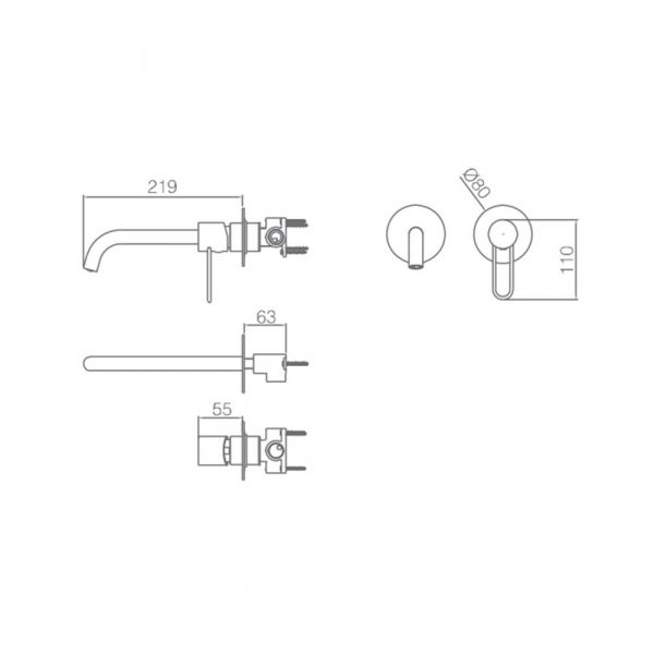 Grifería empotrada monomando latón.
