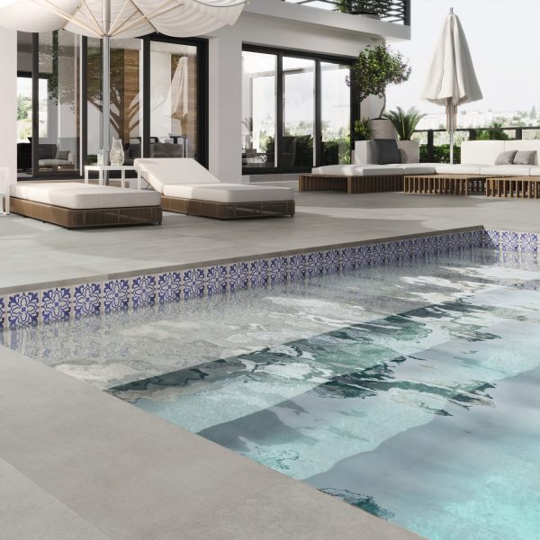 Work Porcelanico Masa coloreada ofrece a tu piscina y jardín un toque único, con su acabado imitación cemento y antideslizante harás de tu jardín un espacio único