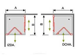 Composición: Mampara de ducha frontal 2 plegables + corredera + lateral fijo.