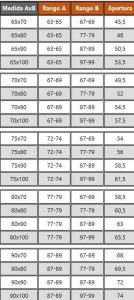 | Medida | Plato 65×70 (63-65×67-69), Plato 65×80 ( 63-65×77-79), Plato 65×90 (63-65×87-89), Plato 65×100 (63-65×97-99), Plato 70×70 (67-69×67-69), Plato 70×80 ( 67-69×77-79), Plato 70×90 (67-69×87-89), Plato 70×100 (67-69×97-99), Plato 75×70 (72-74×67-69), Plato 75×80 ( 72-74×77-79), Plato 75×90 (74-74×87-89), Plato 75×100 (72-74×97-99), Plato 80×70 (77-79×67-69), Plato 80×80 ( 77-79×77-79), Plato 80×90 (77-79×87-89), Plato 80×100 (77-79×97-99), Plato 90×70 (87-89×67-69), Plato 90×80 ( 87-89×77-79), Plato 90×90 (87-89×87-89), Plato 90×100 (87-89×97-99) |