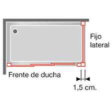 Al combinar lateral fijo con el frontal, la medida del frontal disminuye en 1,5 cm. por el grueso del lateral fijo con lo que debe tener en cuenta este hecho a la hora de pedir la medida de la mampara frontal.